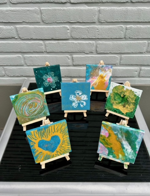 onze creativiteit te laten zien en mee te doen aan de Kunstroute. Onder het genot van het zonnetje werkten we heerlijk buiten.